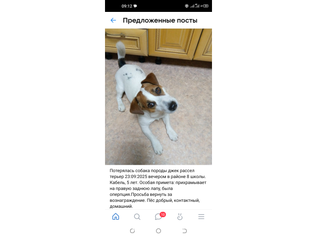 Порода джек рассел терьер, кобель, 5 лет.Особые приметы: хромает на заднюю правую лапу. На животе тату